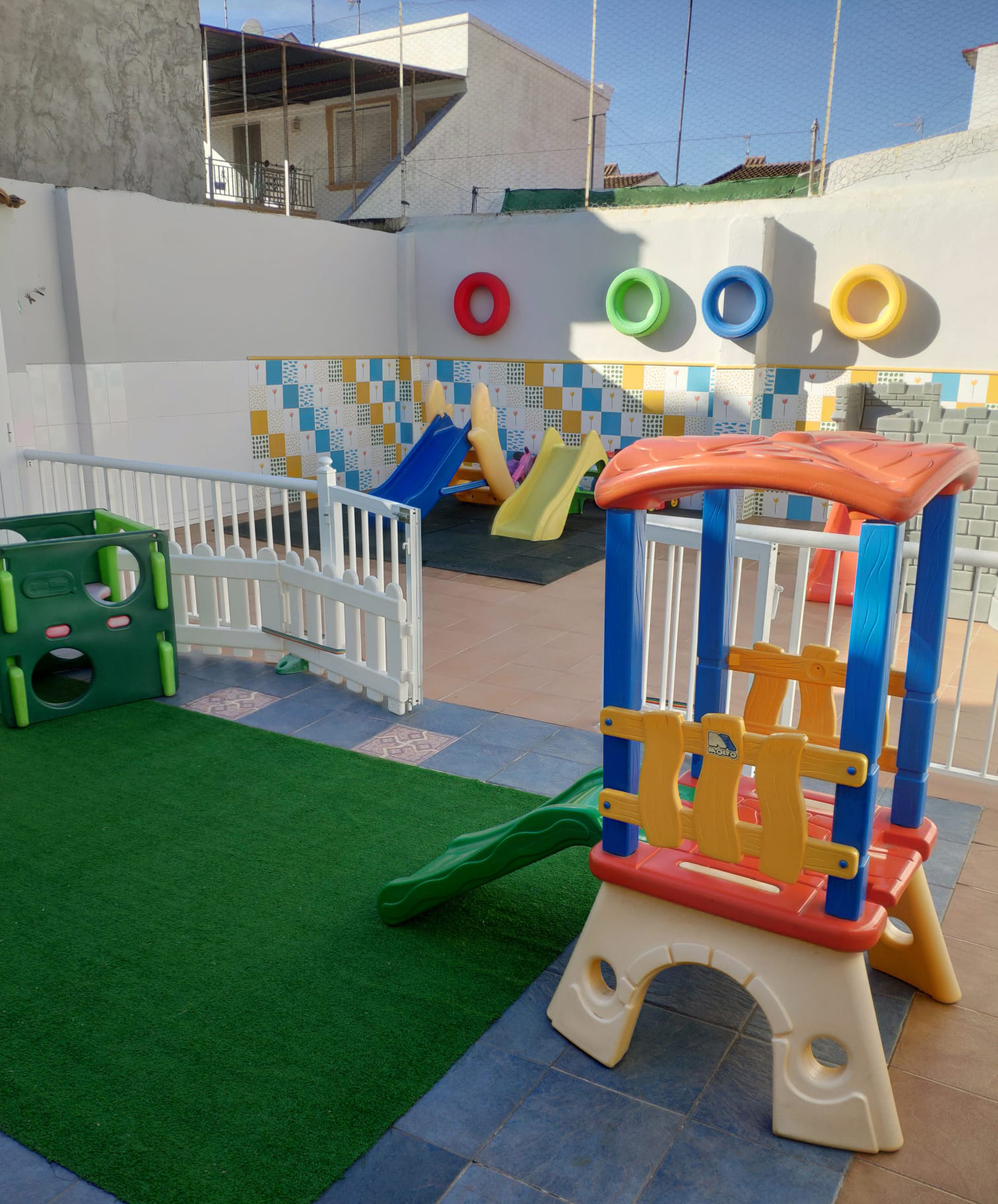 Patio, aulas y actividades de los niños en la Escuela Infantil El Patio.